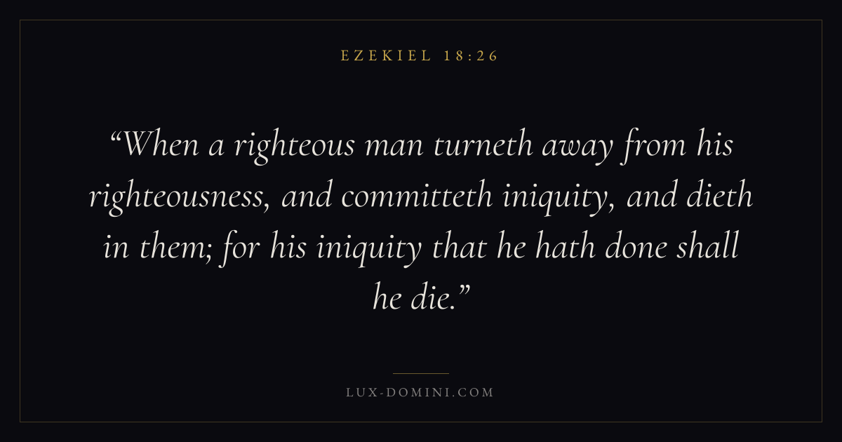 When a righteous man turneth away from his righteousness, and committeth iniquity, and dieth in them; for his iniquity that he hath done shall he die.