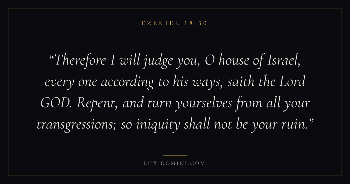 Therefore I will judge you, O house of Israel, every one according to his ways, saith the Lord GOD. Repent, and turn yourselves from all your transgressions; so iniquity shall not be your ruin.