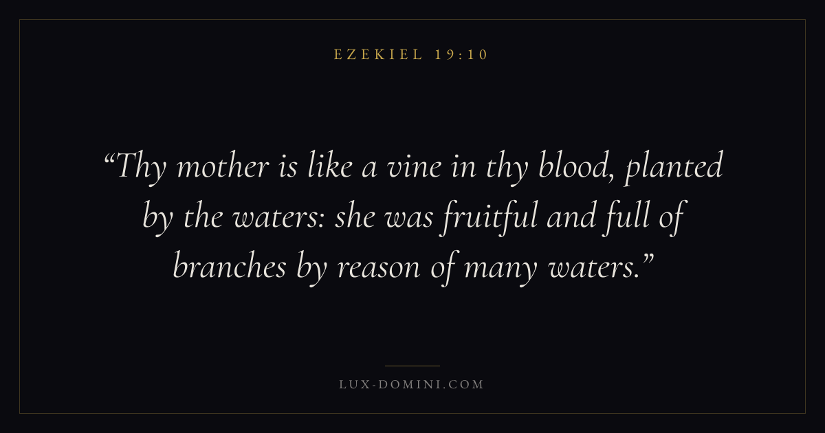 Thy mother is like a vine in thy blood, planted by the waters: she was fruitful and full of branches by reason of many waters.