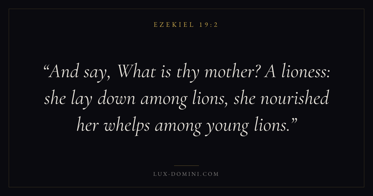 And say, What is thy mother? A lioness: she lay down among lions, she nourished her whelps among young lions.