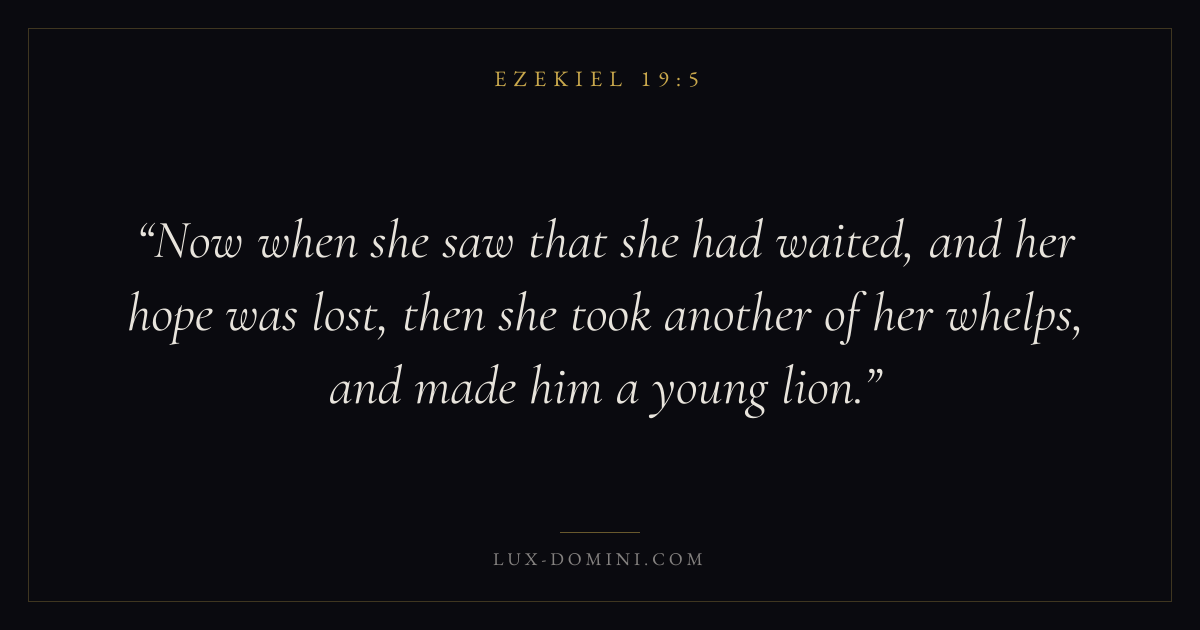 Now when she saw that she had waited, and her hope was lost, then she took another of her whelps, and made him a young lion.