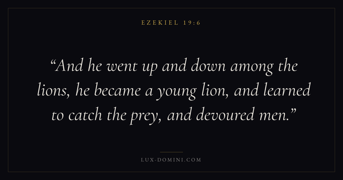 And he went up and down among the lions, he became a young lion, and learned to catch the prey, and devoured men.