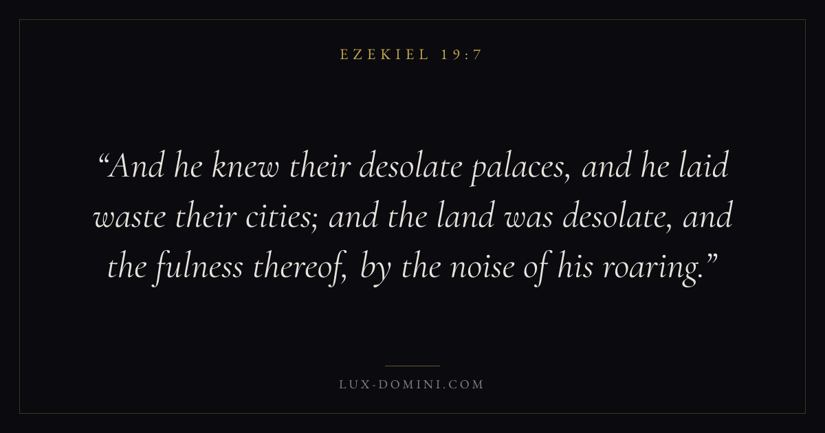 And he knew their desolate palaces, and he laid waste their cities; and the land was desolate, and the fulness thereof, by the noise of his roaring.