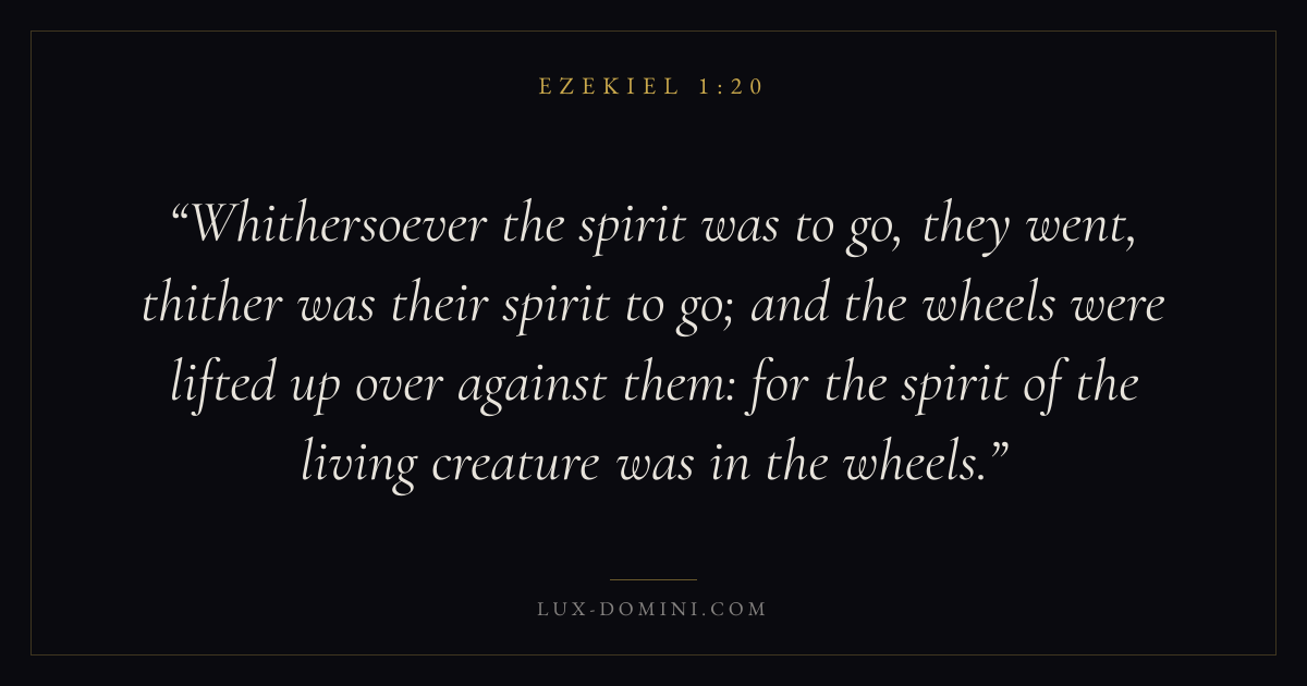 Whithersoever the spirit was to go, they went, thither was their spirit to go; and the wheels were lifted up over against them: for the spirit of the living creature was in the wheels.