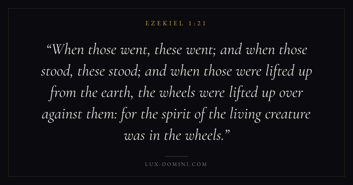 When those went, these went; and when those stood, these stood; and when those were lifted up from the earth, the wheels were lifted up over against them: for the spirit of the living creature was in the wheels.
