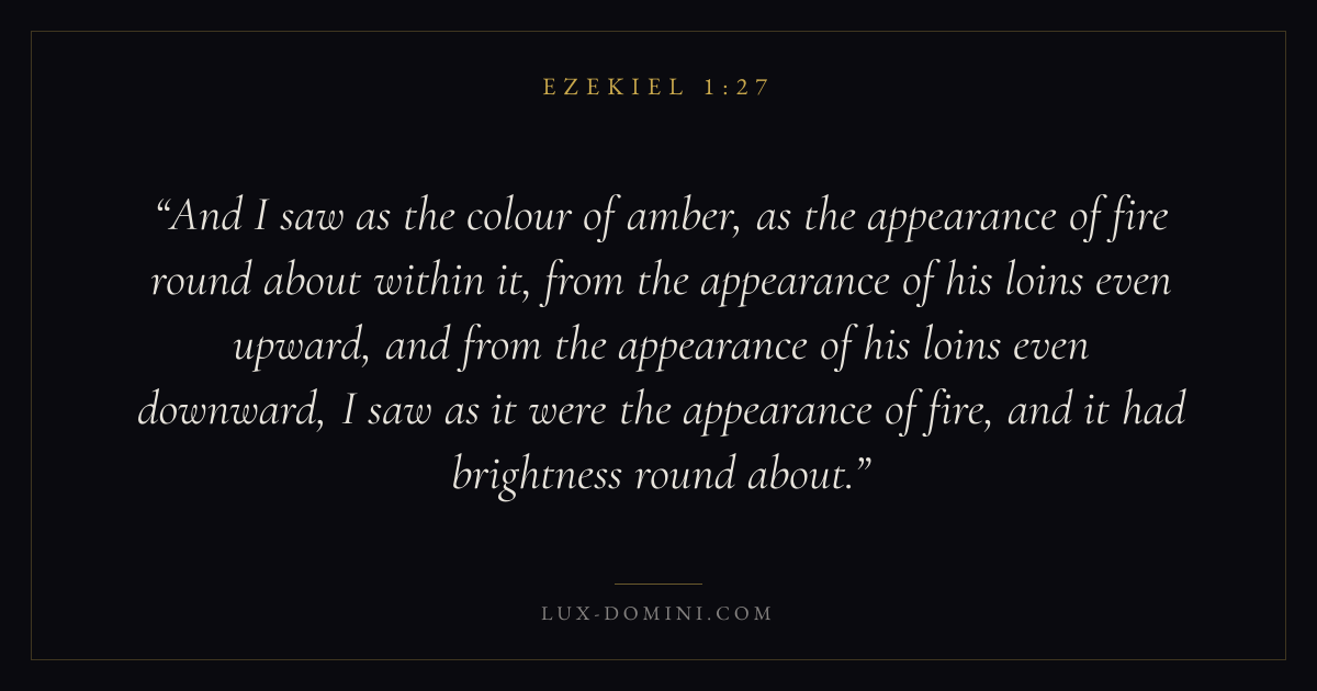 And I saw as the colour of amber, as the appearance of fire round about within it, from the appearance of his loins even upward, and from the appearance of his loins even downward, I saw as it were the appearance of fire, and it had brightness round about.