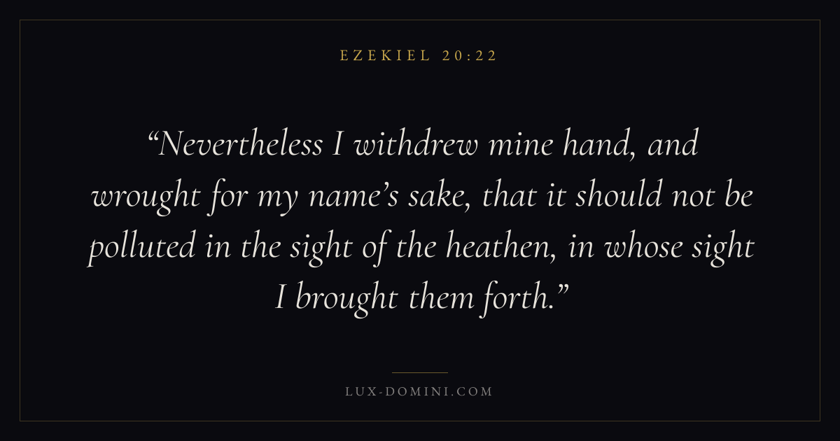 Nevertheless I withdrew mine hand, and wrought for my name’s sake, that it should not be polluted in the sight of the heathen, in whose sight I brought them forth.
