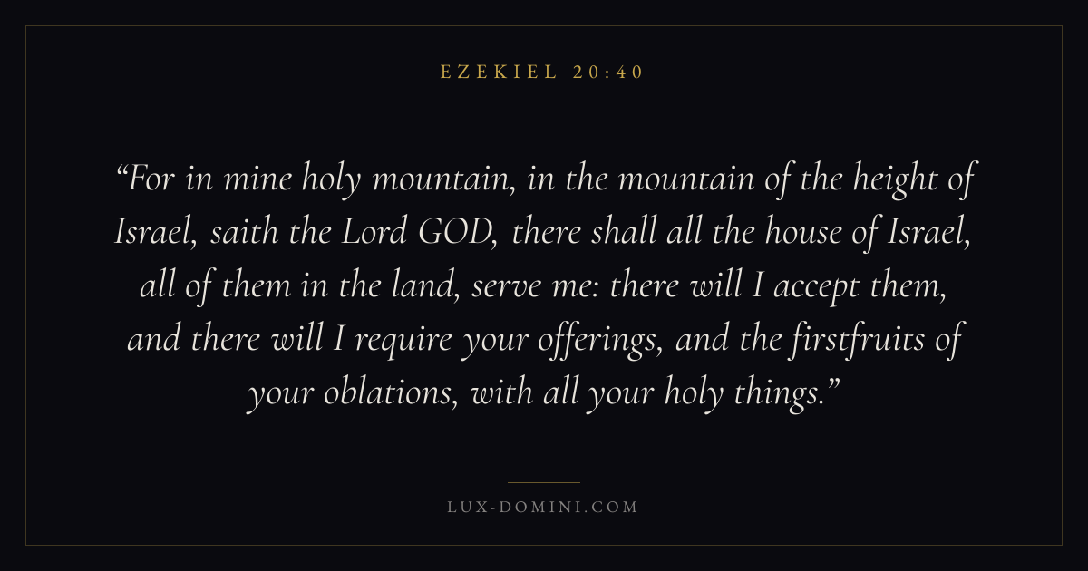 For in mine holy mountain, in the mountain of the height of Israel, saith the Lord GOD, there shall all the house of Israel, all of them in the land, serve me: there will I accept them, and there will I require your offerings, and the firstfruits of your oblations, with all your holy things.