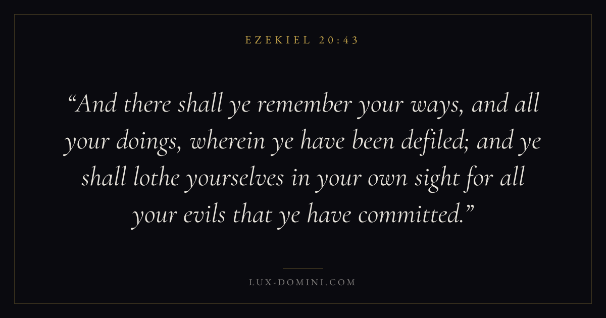 And there shall ye remember your ways, and all your doings, wherein ye have been defiled; and ye shall lothe yourselves in your own sight for all your evils that ye have committed.