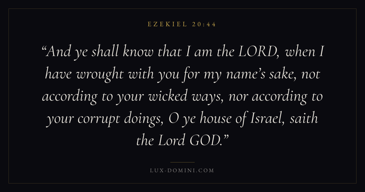 And ye shall know that I am the LORD, when I have wrought with you for my name’s sake, not according to your wicked ways, nor according to your corrupt doings, O ye house of Israel, saith the Lord GOD.