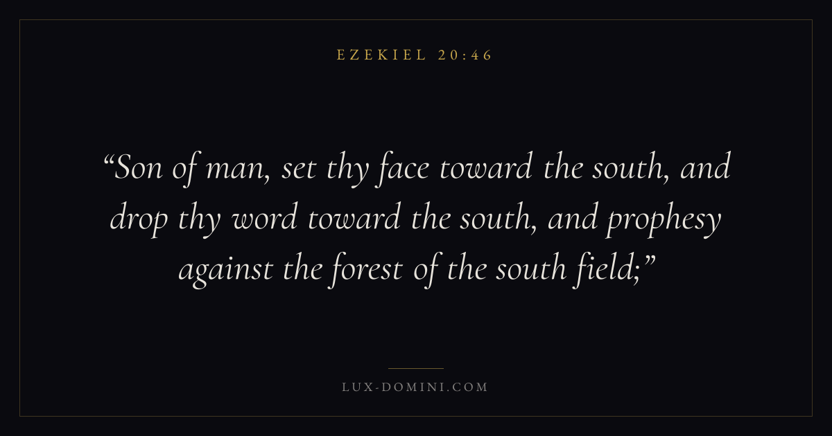 Son of man, set thy face toward the south, and drop thy word toward the south, and prophesy against the forest of the south field;