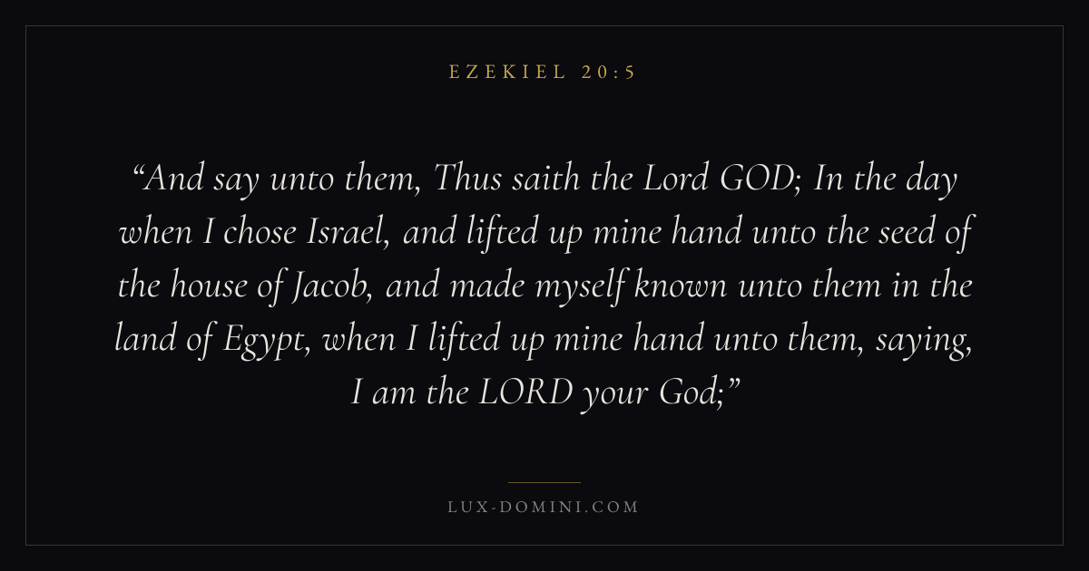And say unto them, Thus saith the Lord GOD; In the day when I chose Israel, and lifted up mine hand unto the seed of the house of Jacob, and made myself known unto them in the land of Egypt, when I lifted up mine hand unto them, saying, I am the LORD your God;