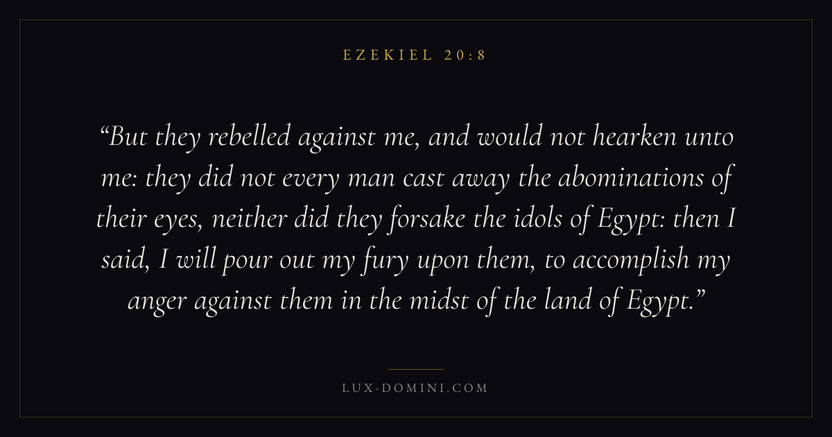 But they rebelled against me, and would not hearken unto me: they did not every man cast away the abominations of their eyes, neither did they forsake the idols of Egypt: then I said, I will pour out my fury upon them, to accomplish my anger against them in the midst of the land of Egypt.