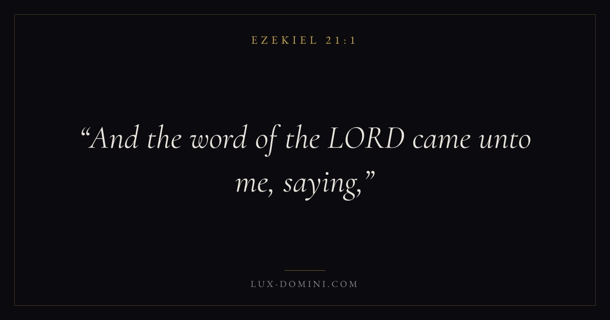 Books / Ezekiel / Chapter 21 / Verse 1 ← Ezekiel 20:49 Ezekiel 21:1 Ezekiel 21:2 → And the word of the LORD came unto me, saying, Download verse card Share on Twitter Share on Facebook Pin it ✦ Key themes Justice and mercyTruthGlory of GodJudgment Read with Ezekiel 21:2Ezekiel 21:3Micah 6:8Amos 5:24 Related topics Bible verses about justice and mercyBible verses about truth ✦ Ezekiel Chapter 21 verses V. 1 V. 2 V. 3 V. 4 V. 5 V. 6 V. 7 V. 8 V. 9 V. 10 V. 11 V. 12 V. 13 V. 14 V. 15 V. 16 V. 17 V. 18 V. 19 V. 20 V. 21 V. 22 V. 23 V. 24 V. 25 V. 26 V. 27 V. 28 V. 29 V. 30 V. 31 V. 32