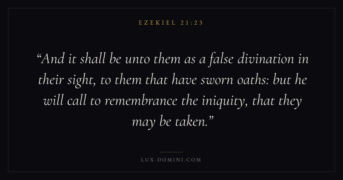 And it shall be unto them as a false divination in their sight, to them that have sworn oaths: but he will call to remembrance the iniquity, that they may be taken.