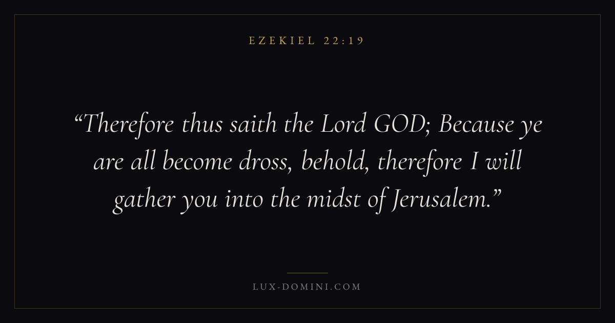 Therefore thus saith the Lord GOD; Because ye are all become dross, behold, therefore I will gather you into the midst of Jerusalem.