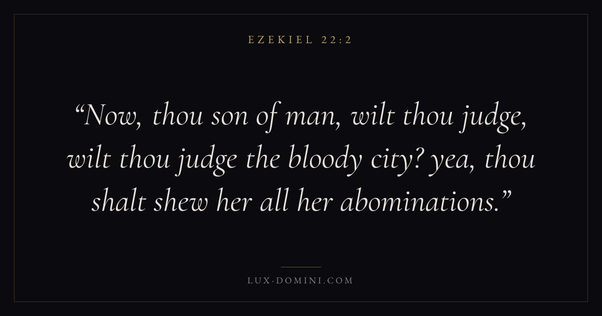 Now, thou son of man, wilt thou judge, wilt thou judge the bloody city? yea, thou shalt shew her all her abominations.