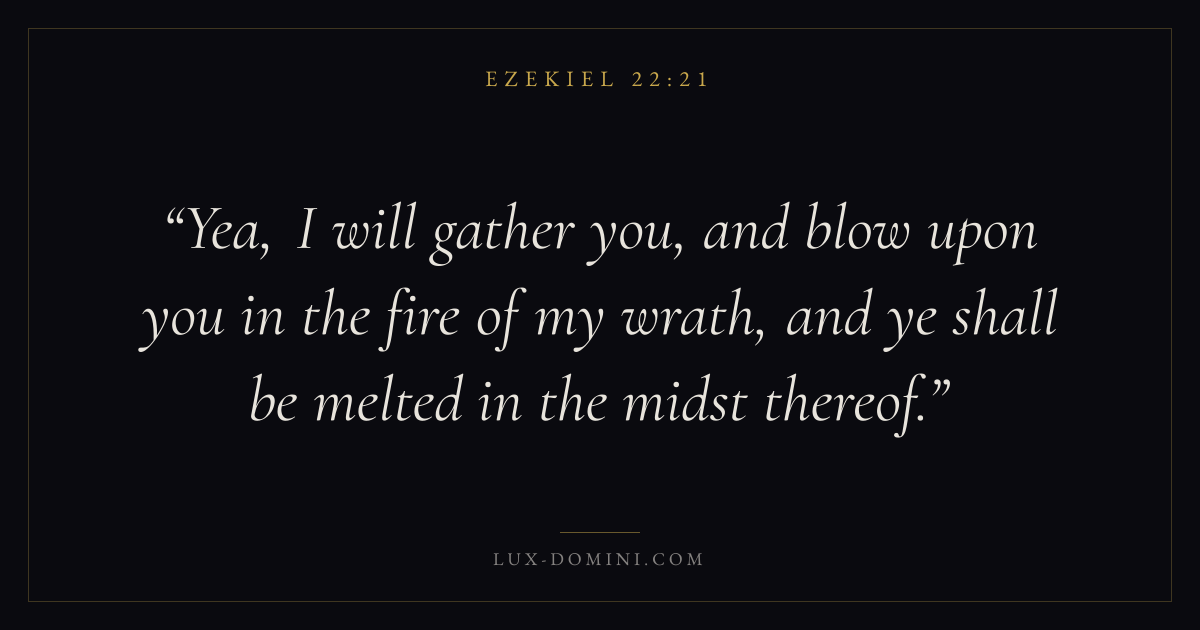Yea, I will gather you, and blow upon you in the fire of my wrath, and ye shall be melted in the midst thereof.