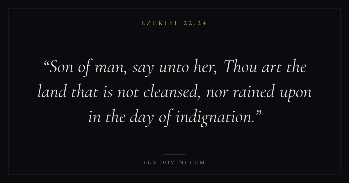 Son of man, say unto her, Thou art the land that is not cleansed, nor rained upon in the day of indignation.
