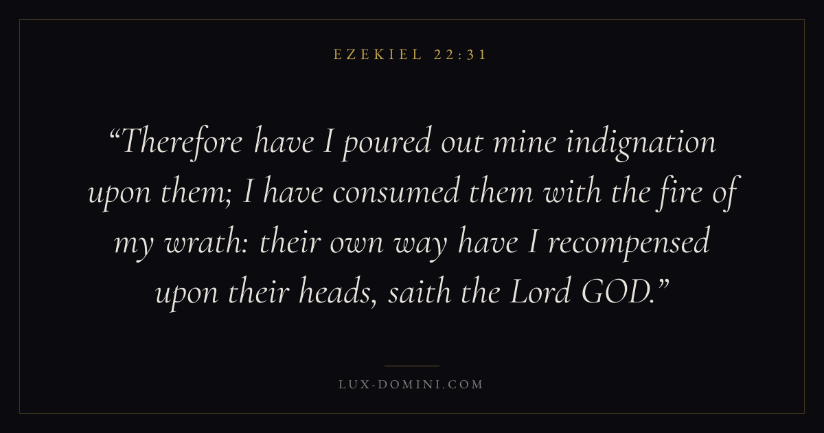 Therefore have I poured out mine indignation upon them; I have consumed them with the fire of my wrath: their own way have I recompensed upon their heads, saith the Lord GOD.