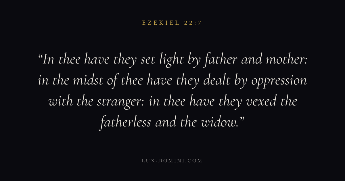 In thee have they set light by father and mother: in the midst of thee have they dealt by oppression with the stranger: in thee have they vexed the fatherless and the widow.
