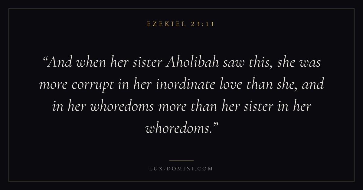 And when her sister Aholibah saw this, she was more corrupt in her inordinate love than she, and in her whoredoms more than her sister in her whoredoms.