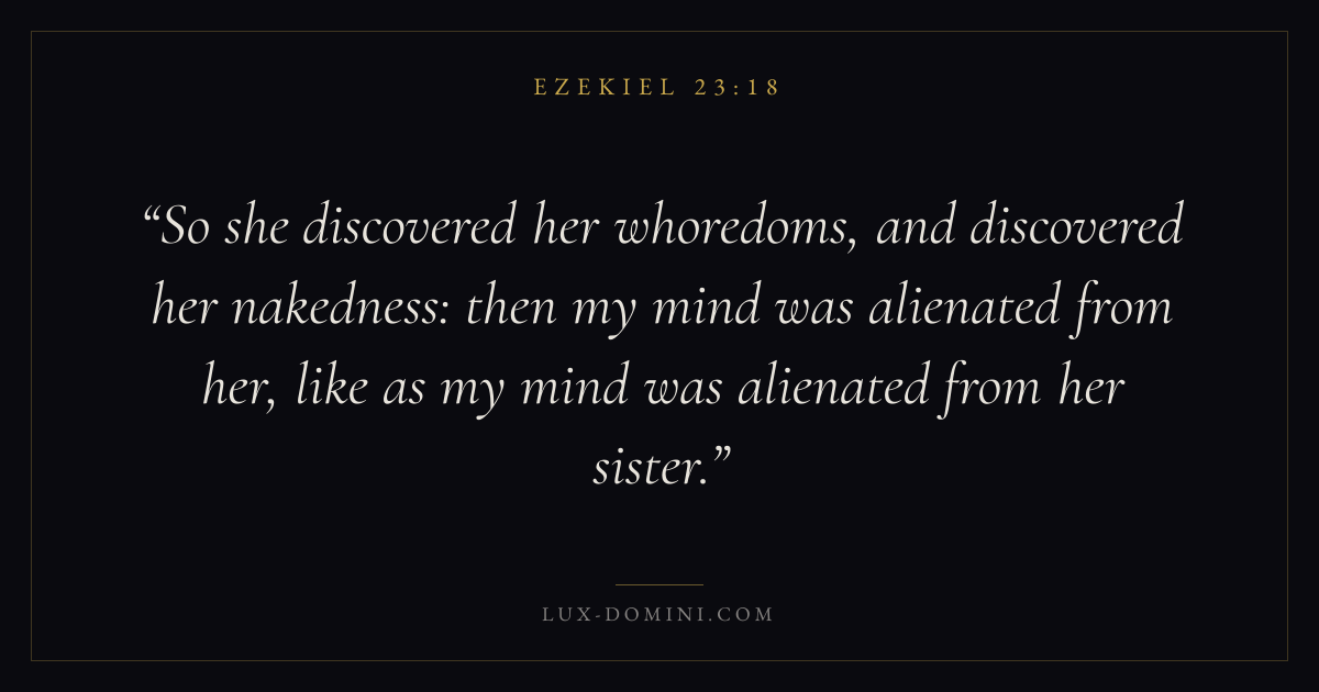 So she discovered her whoredoms, and discovered her nakedness: then my mind was alienated from her, like as my mind was alienated from her sister.