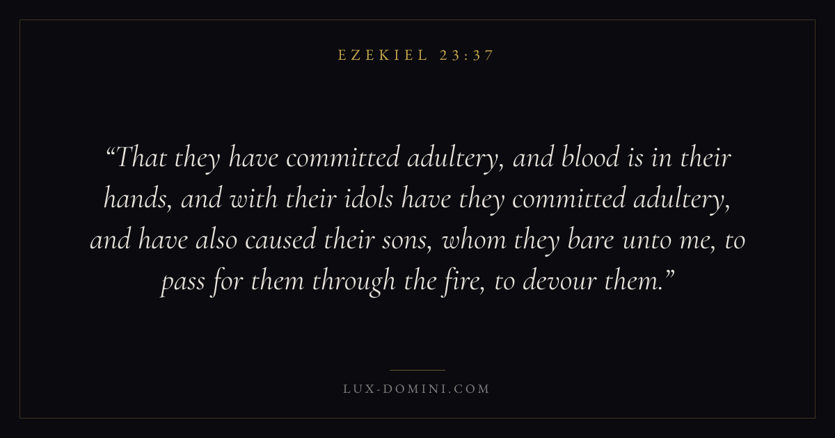 That they have committed adultery, and blood is in their hands, and with their idols have they committed adultery, and have also caused their sons, whom they bare unto me, to pass for them through the fire, to devour them.