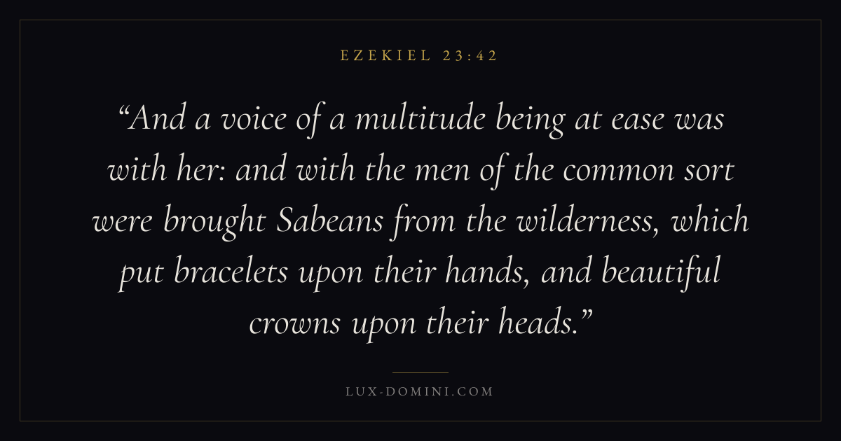 And a voice of a multitude being at ease was with her: and with the men of the common sort were brought Sabeans from the wilderness, which put bracelets upon their hands, and beautiful crowns upon their heads.