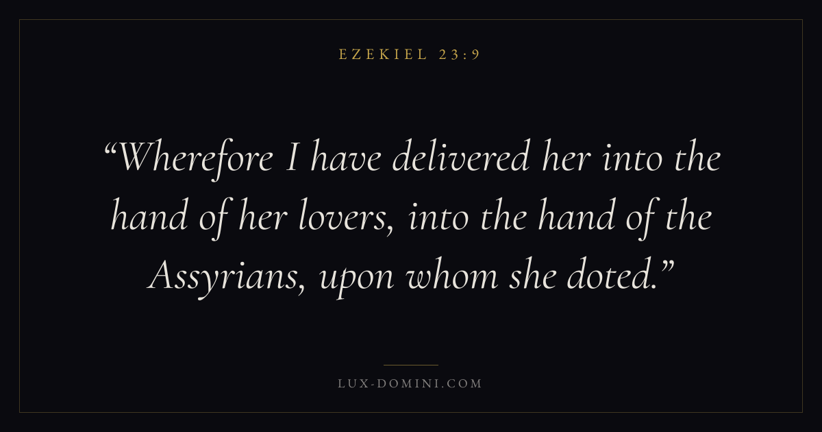 Wherefore I have delivered her into the hand of her lovers, into the hand of the Assyrians, upon whom she doted.