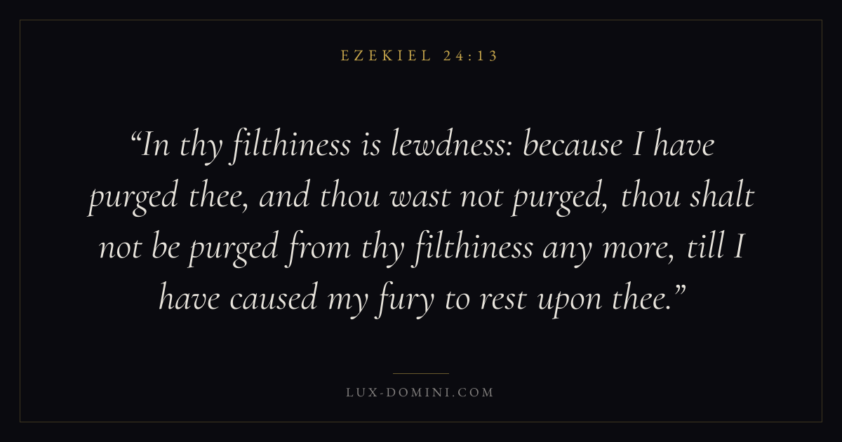 In thy filthiness is lewdness: because I have purged thee, and thou wast not purged, thou shalt not be purged from thy filthiness any more, till I have caused my fury to rest upon thee.