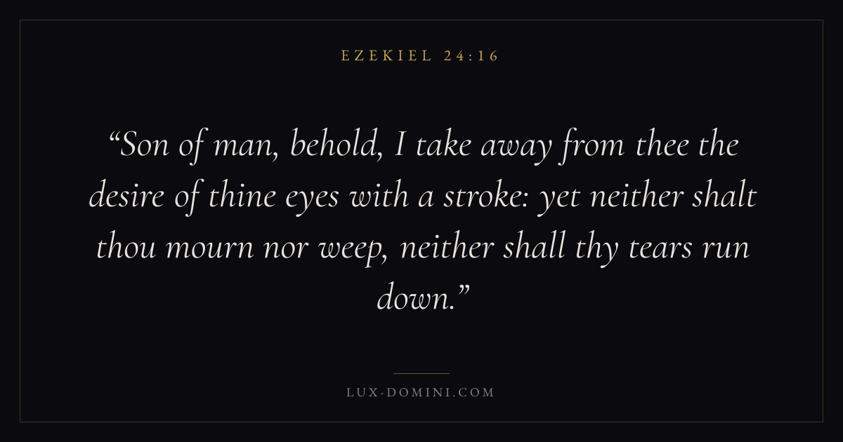 Son of man, behold, I take away from thee the desire of thine eyes with a stroke: yet neither shalt thou mourn nor weep, neither shall thy tears run down.
