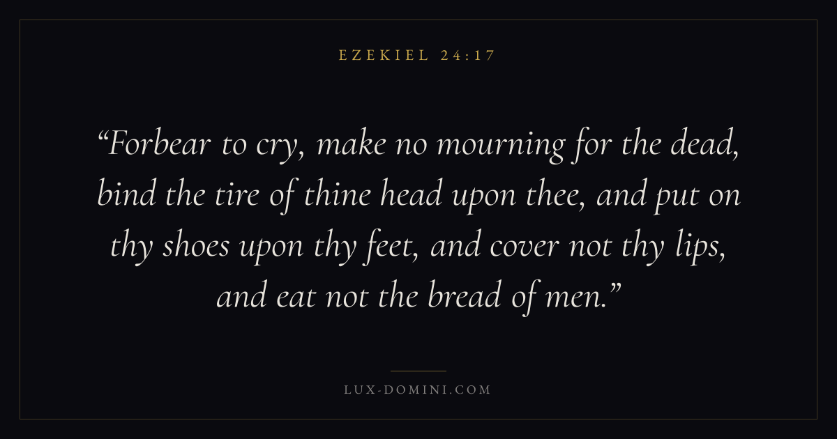 Forbear to cry, make no mourning for the dead, bind the tire of thine head upon thee, and put on thy shoes upon thy feet, and cover not thy lips, and eat not the bread of men.