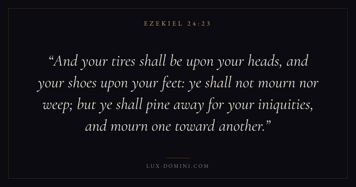 And your tires shall be upon your heads, and your shoes upon your feet: ye shall not mourn nor weep; but ye shall pine away for your iniquities, and mourn one toward another.