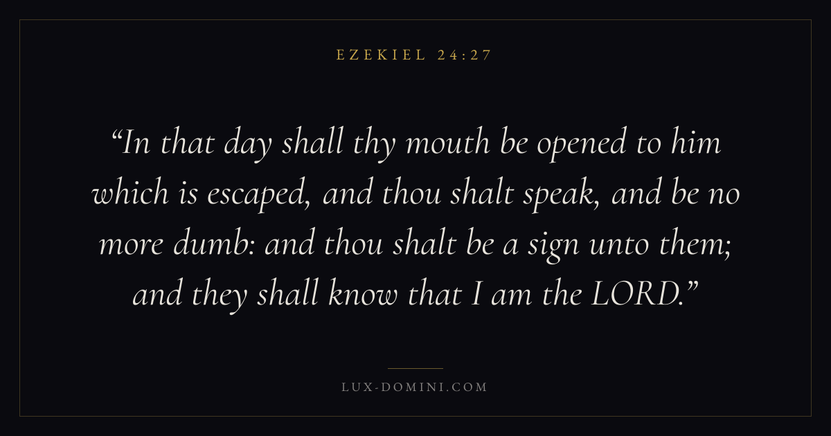 In that day shall thy mouth be opened to him which is escaped, and thou shalt speak, and be no more dumb: and thou shalt be a sign unto them; and they shall know that I am the LORD.