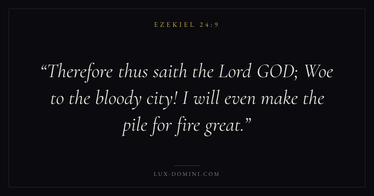 Therefore thus saith the Lord GOD; Woe to the bloody city! I will even make the pile for fire great.