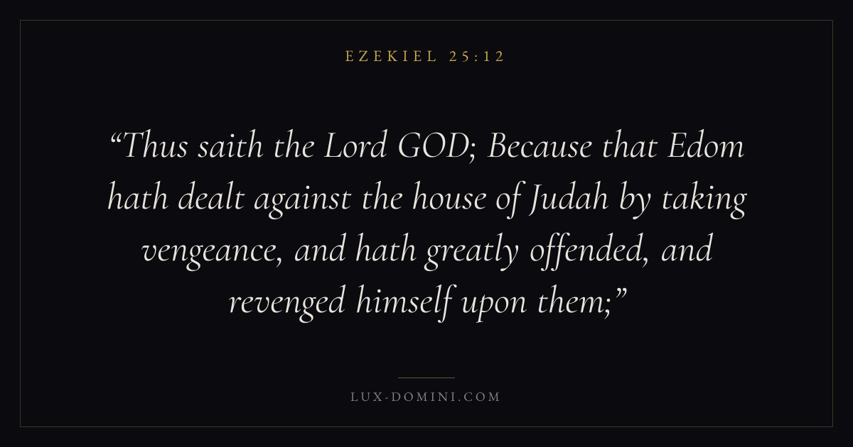 Thus saith the Lord GOD; Because that Edom hath dealt against the house of Judah by taking vengeance, and hath greatly offended, and revenged himself upon them;