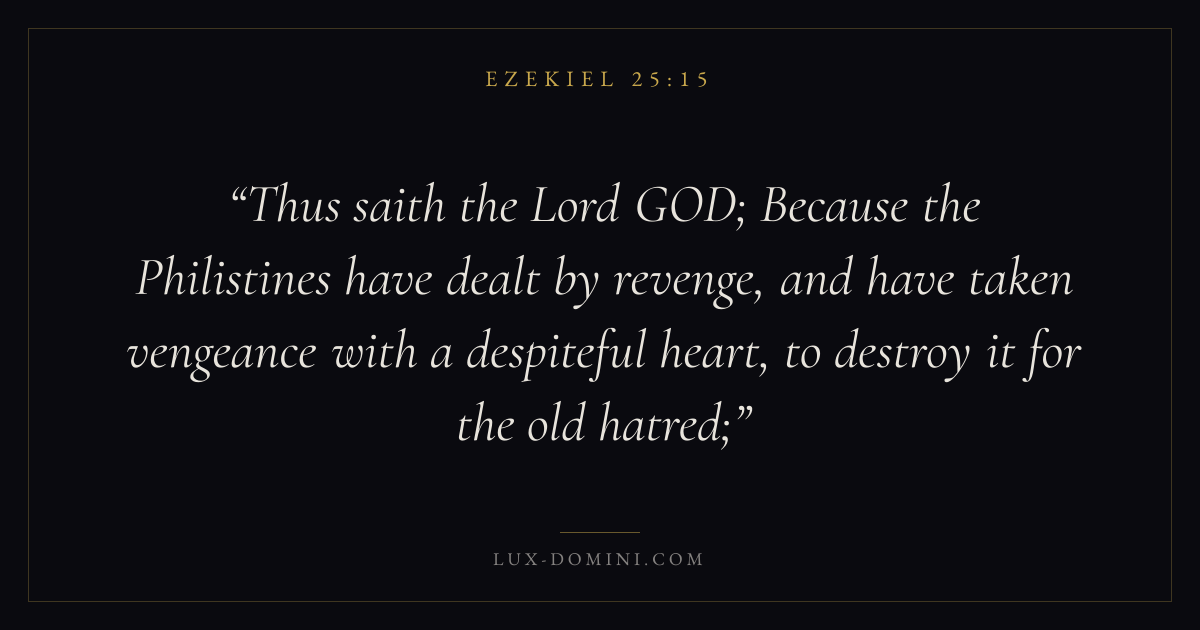 Thus saith the Lord GOD; Because the Philistines have dealt by revenge, and have taken vengeance with a despiteful heart, to destroy it for the old hatred;