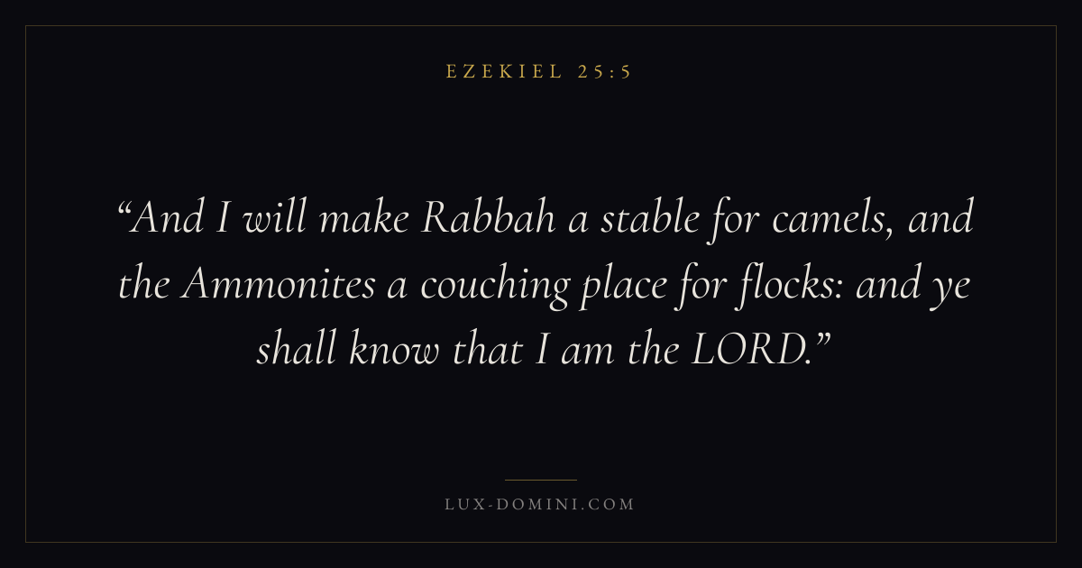 And I will make Rabbah a stable for camels, and the Ammonites a couching place for flocks: and ye shall know that I am the LORD.
