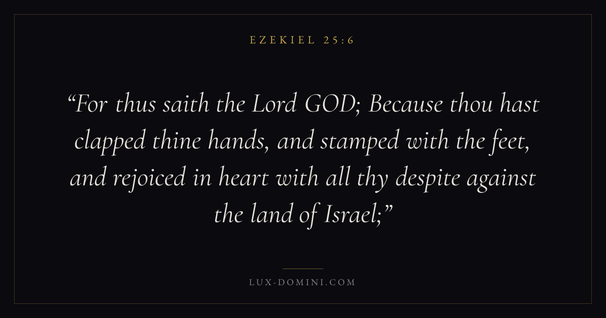 For thus saith the Lord GOD; Because thou hast clapped thine hands, and stamped with the feet, and rejoiced in heart with all thy despite against the land of Israel;