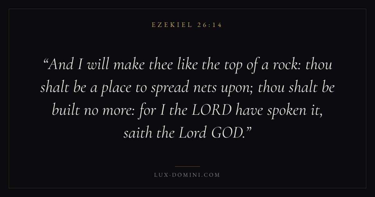 And I will make thee like the top of a rock: thou shalt be a place to spread nets upon; thou shalt be built no more: for I the LORD have spoken it, saith the Lord GOD.