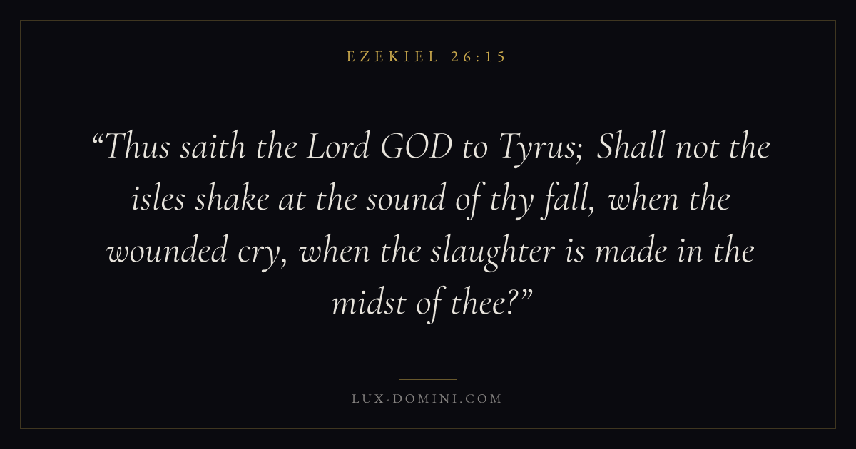 Thus saith the Lord GOD to Tyrus; Shall not the isles shake at the sound of thy fall, when the wounded cry, when the slaughter is made in the midst of thee?