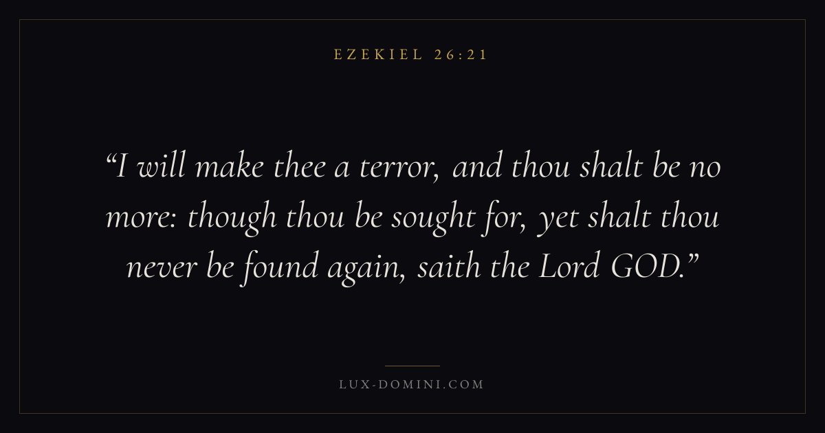 I will make thee a terror, and thou shalt be no more: though thou be sought for, yet shalt thou never be found again, saith the Lord GOD.
