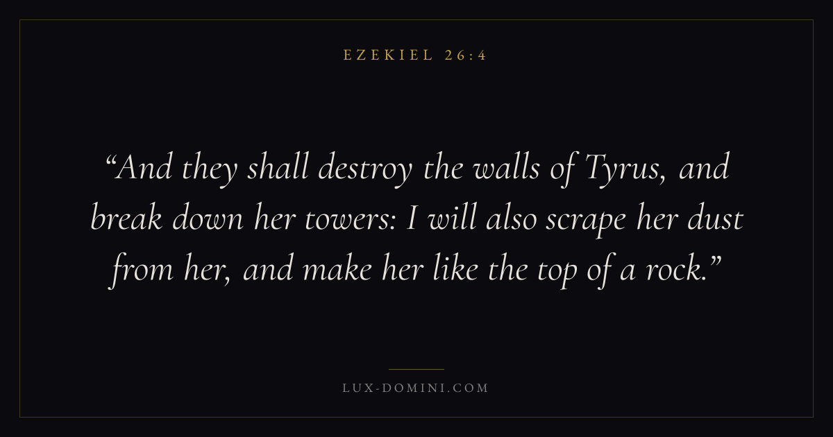 And they shall destroy the walls of Tyrus, and break down her towers: I will also scrape her dust from her, and make her like the top of a rock.