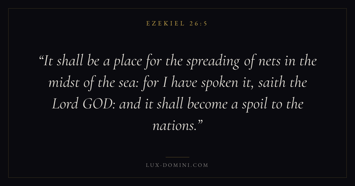 It shall be a place for the spreading of nets in the midst of the sea: for I have spoken it, saith the Lord GOD: and it shall become a spoil to the nations.