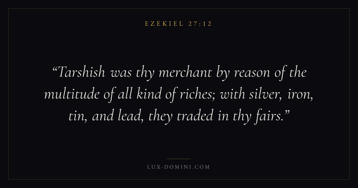 Tarshish was thy merchant by reason of the multitude of all kind of riches; with silver, iron, tin, and lead, they traded in thy fairs.