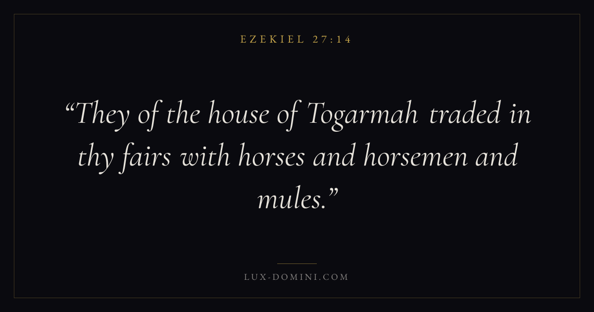 They of the house of Togarmah traded in thy fairs with horses and horsemen and mules.