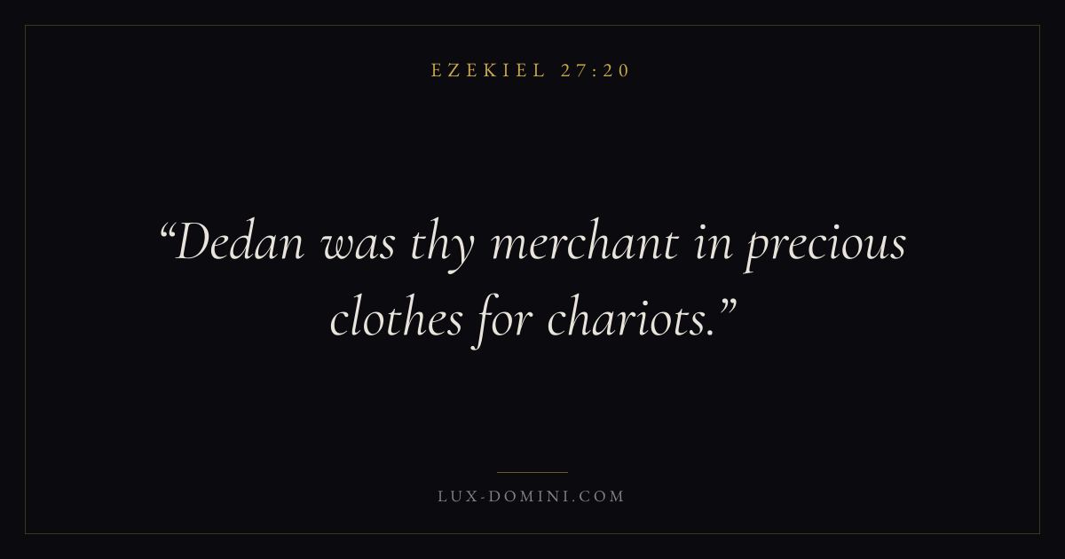 Dedan was thy merchant in precious clothes for chariots.