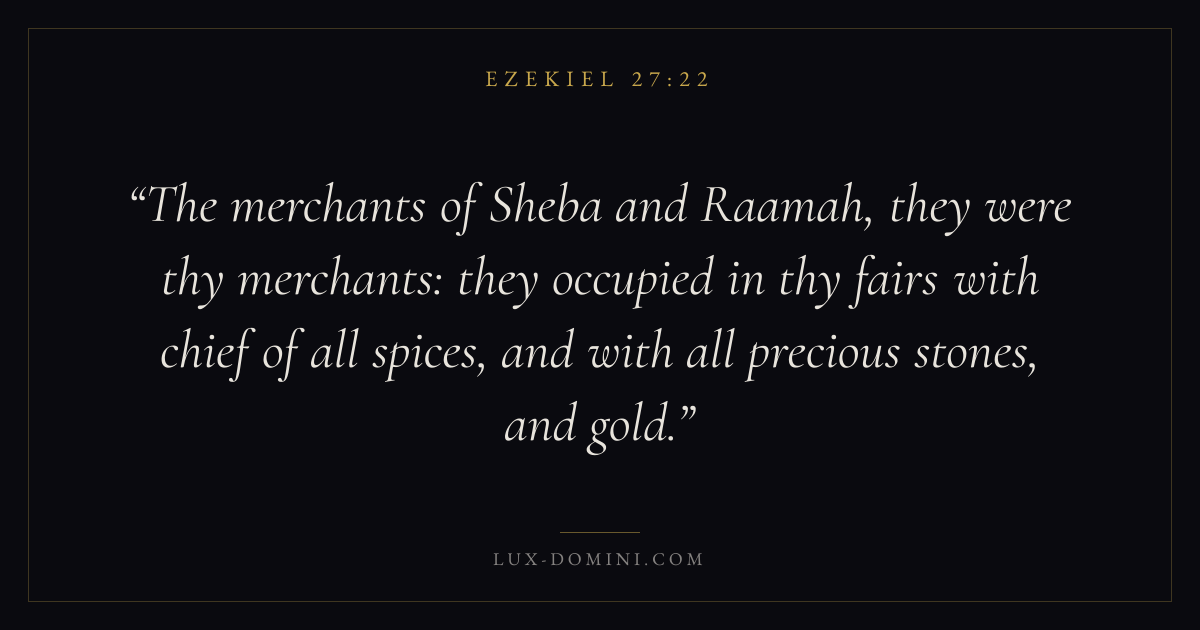 The merchants of Sheba and Raamah, they were thy merchants: they occupied in thy fairs with chief of all spices, and with all precious stones, and gold.