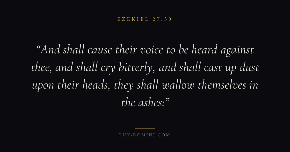 And shall cause their voice to be heard against thee, and shall cry bitterly, and shall cast up dust upon their heads, they shall wallow themselves in the ashes: